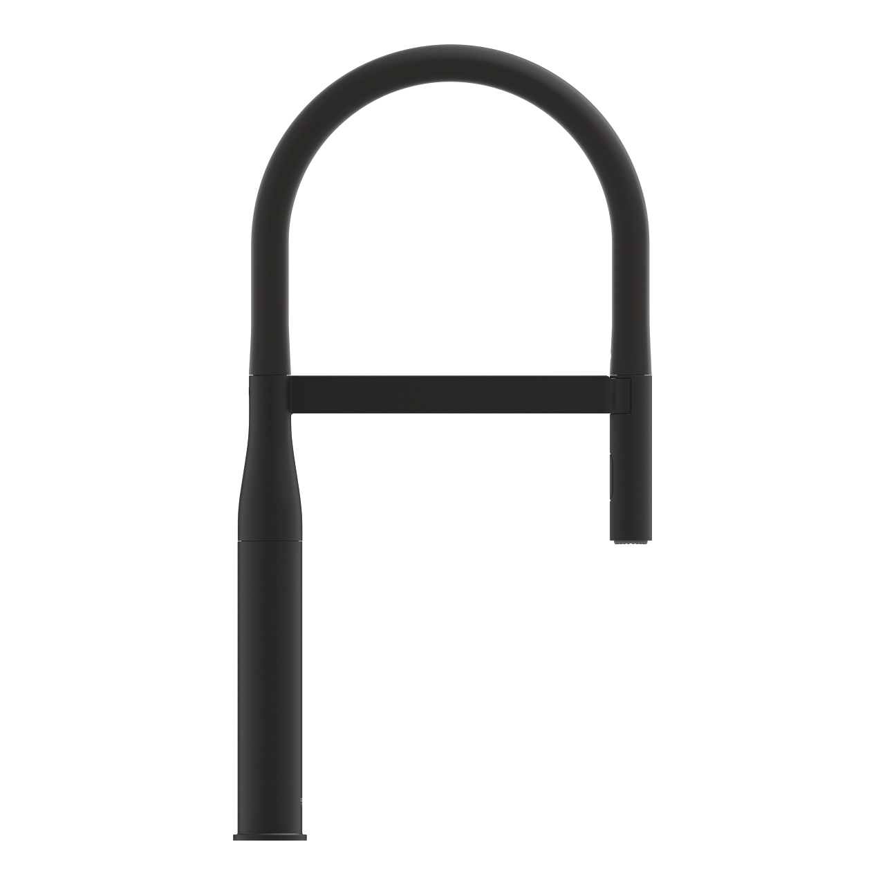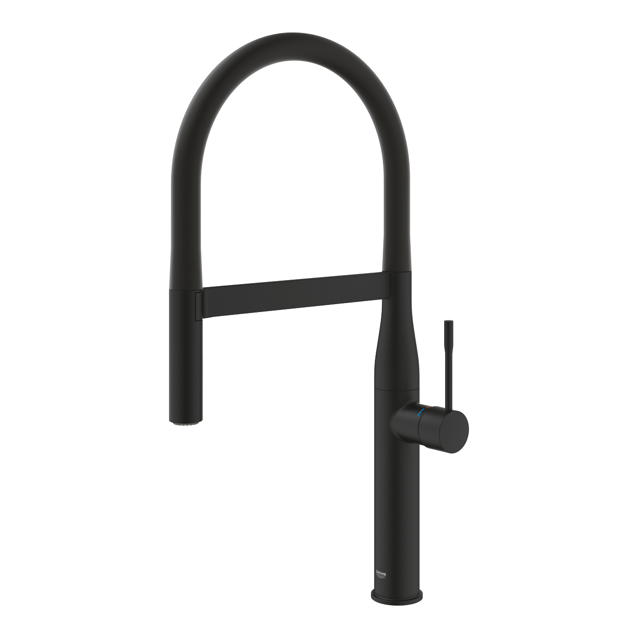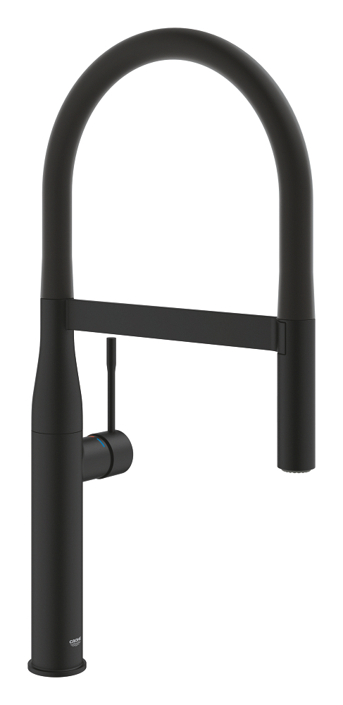 For the busy modern kitchen you need a tap that looks super stylish and works really hard. Welcome to the GROHE Essence Professional kitchen tap in phantom black, which has striking industrial styling that enhances any space, but real inner beauty too because it is packed with great functionality. It fits easily onto island units or underneath wall-mounted cupboards, offering you total layout flexibility. The spring-mounted spray head rotates a full 360˚ to reach every corner of your sink while the professional spray is ideal for cleaning veg, filling pots and cleaning the sink. The two spray options – a fine laminar spray and a powerful shower jet – offer even more flexibility. The GROHE Magnetic Docking system also means the solid metal spray head retracts easily and neatly when you’re done, guided back into place by a powerful magnet. The tap is easy to clean, too, with the GROHFlexx santoprene hose offering a wipe-clean surface while the SpeedClean silicone nozzles can be cleared of limescale with a brush of your finger. The hose is available in various stylish colours – ideal for fitting in with any kitchen design style. Inside the monobloc mixer, GROHE SilkMove technology ensures life-long smooth and accurate water and temperature control. And the easy-care GROHE Long-Life finish is highly durable for a spotless surface that will last and last. It's time to create a professional level of kitchen convenience?