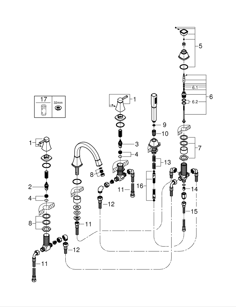 Grohe Grandera 5 Delikli Küvet Bataryası - 29415IG0