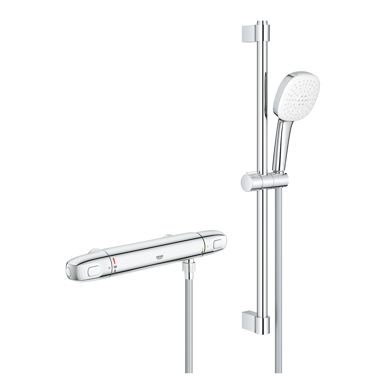 Gelince Haber VerDuş barı seti ile 2 sprey (Yağmur, Jet), şunlardan oluşur: Grohtherm 1000 termostatik duş bataryası 1/2 (34 817), Tempesta Cube duş barı seti, 600 mm (26 748), profesyonel baskı.