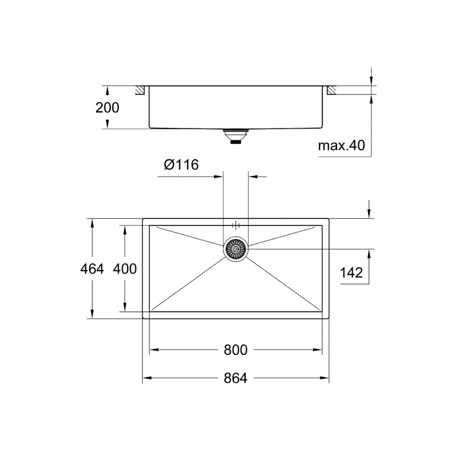 tek hazne: 800 x 400 x 200 mm