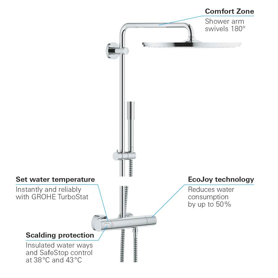 GROHE SafeStop 38°C’de sabitlenebilir sıcaklık