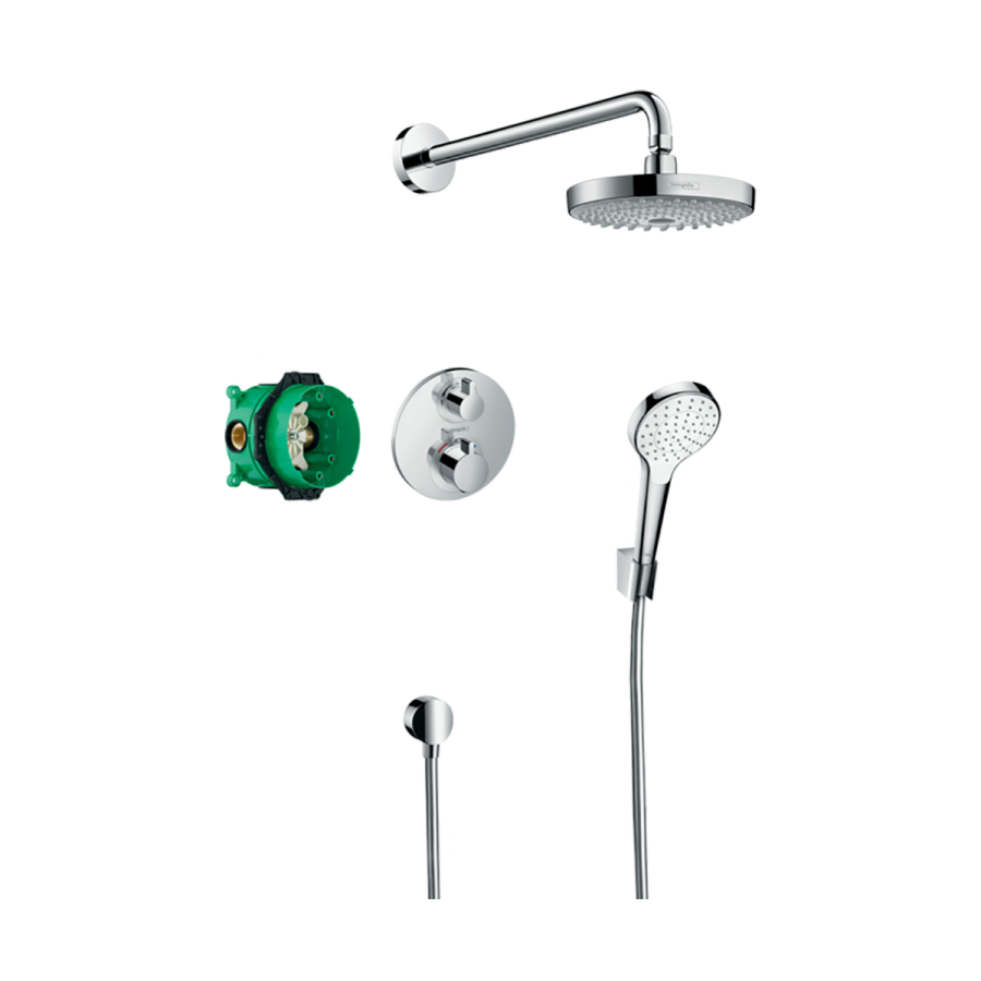 • şunları içerir:: tepe duşu, el duşu, duş termostatı, iç set, duş dirseği, duş askısı, duvar çıkışı, duş hortumu duş başlığı ölçüsü: 187 mm sprey türü tepe duşu: Rain, IntenseRainel duşu sprey tipi: Rain maksimum akış miktarı (3 bar basınçta): 17 l/dk hortum bükülmelerine karşı hareketli bağlantımaks. çalışma basıncı: 6 bar min. çalışma basıncı: 1 bar bağlantı türü: iç set