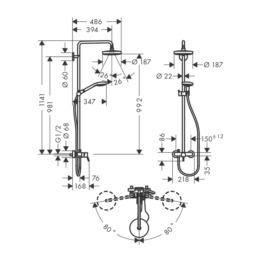 • duş barı çapı: 22 mm