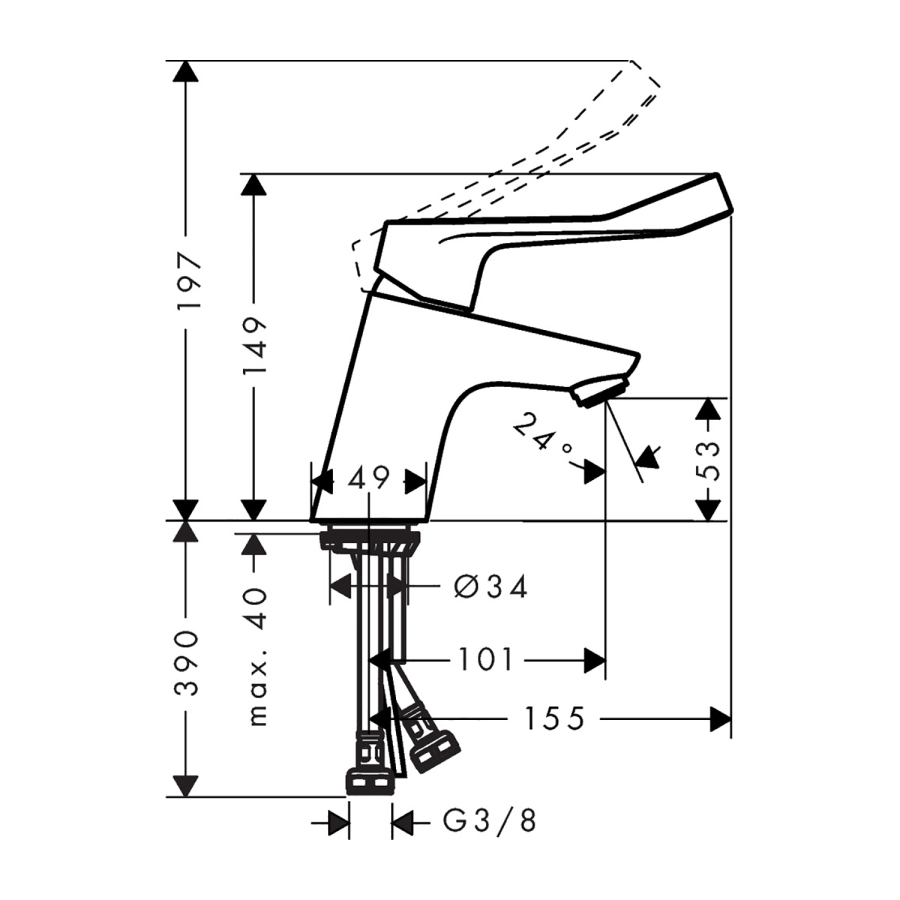 • gaga yüksekliği: 53 mm