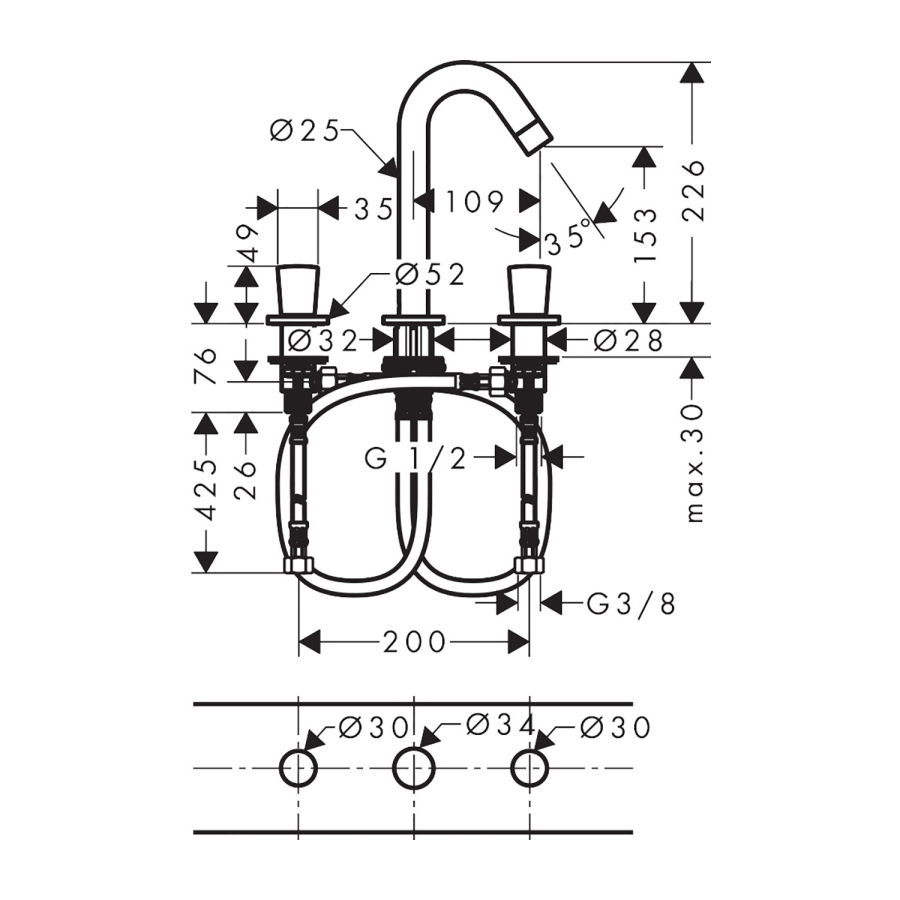 • şunları içerir:: 3-delikli lavabo bataryası, gider seti