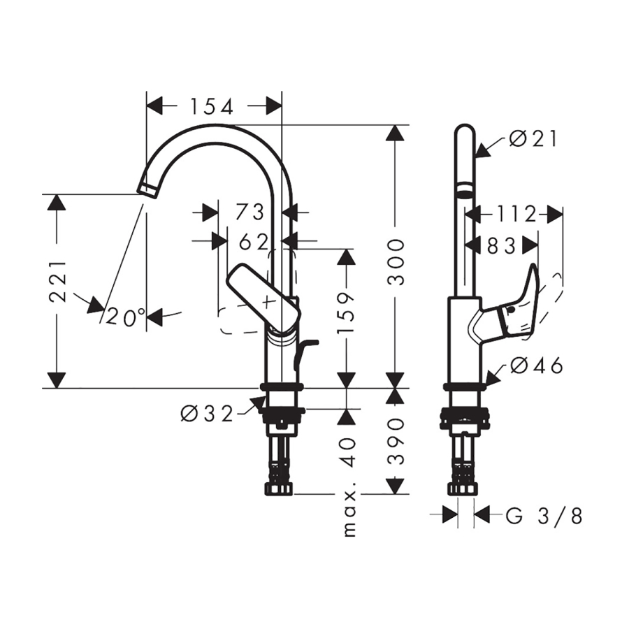 • gaga yüksekliği: 221 mm