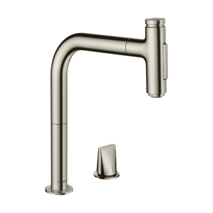 • kilitlenebilir duş spreyi, sprey yönlendiriciye basarak sprey geri döner ve sprey kolu kapatıldığında otomatik olarak geri döner