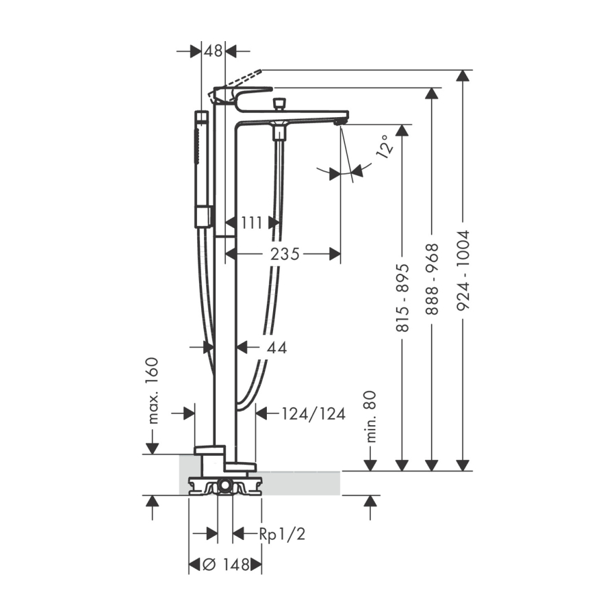 HansGrohe Metropol Tek Kollu Banyo Bataryası Çubuk Volan İle Yerden - 32532140 - 2