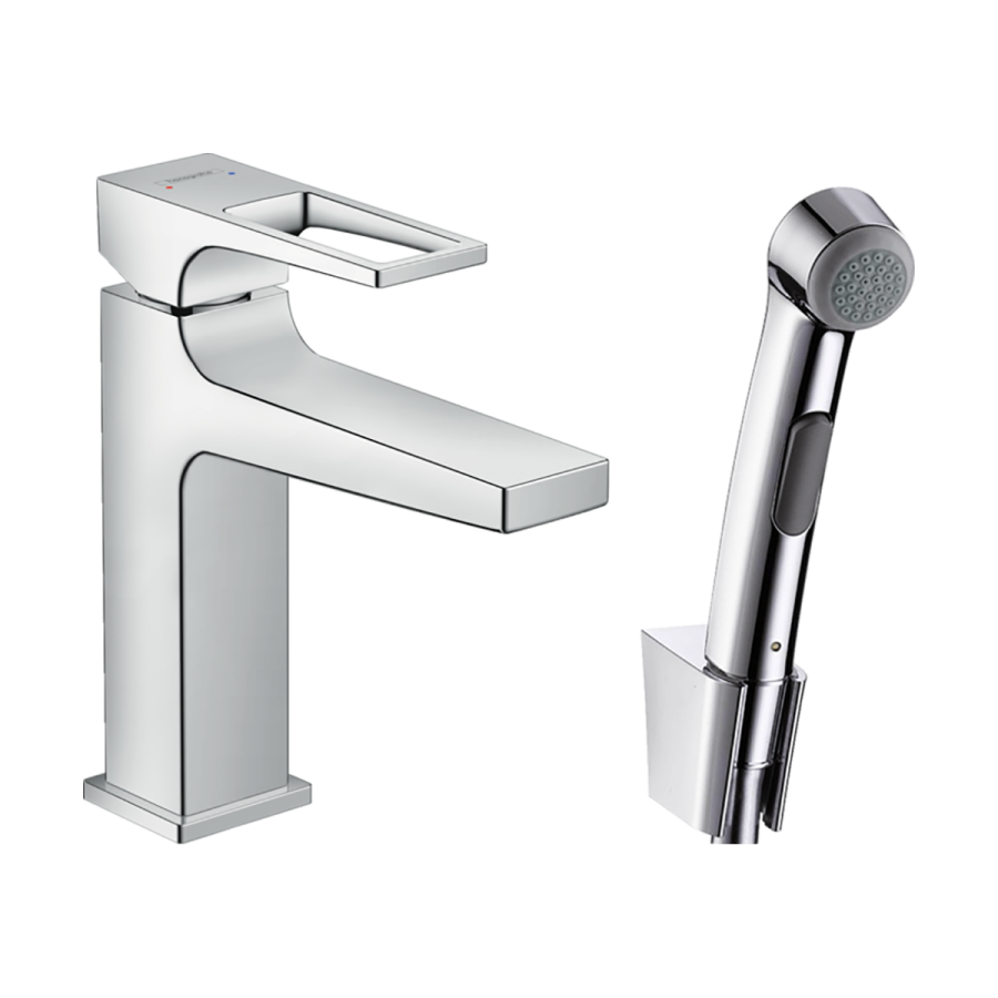 • şunları içerir:: tek kollu lavabo bataryası, bidette el duşu, duş askısı, duş hortumu, gider seti