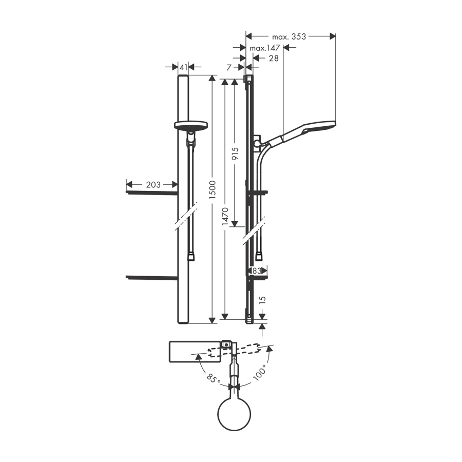 • 90° pozisyonda ayarlanabilir el duşu askısı, sağa ve sola, yukarı ve aşağı dönebilir