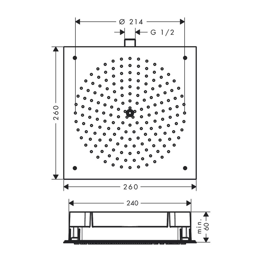 • duş başlığı ölçüsü: 260 x 260 mm