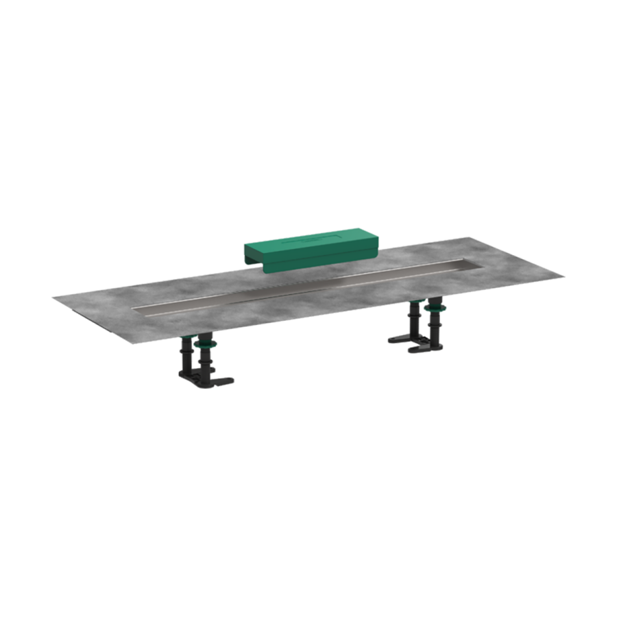 • şunları içerir:: Paslanmaz Çelik gider, önceden monte edilmiş sızdırmazlık membranı, yükselik ayarlama ayağı, Seramik kaplama aracı