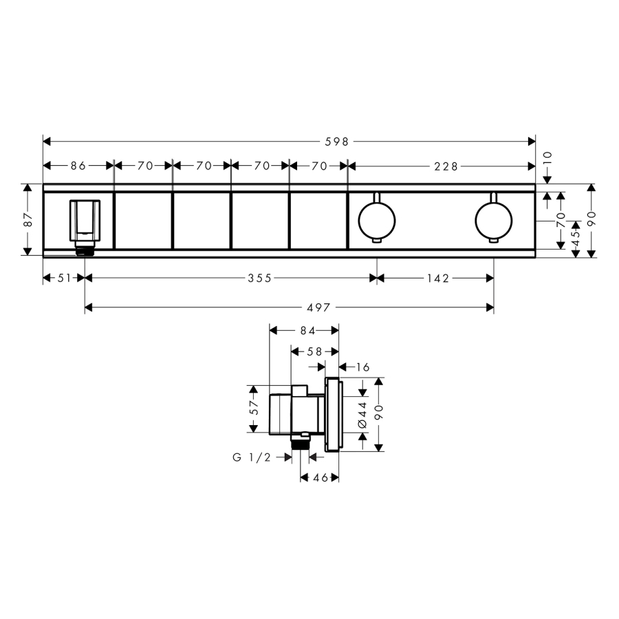• şunları içerir:: Termostat, duş askısı