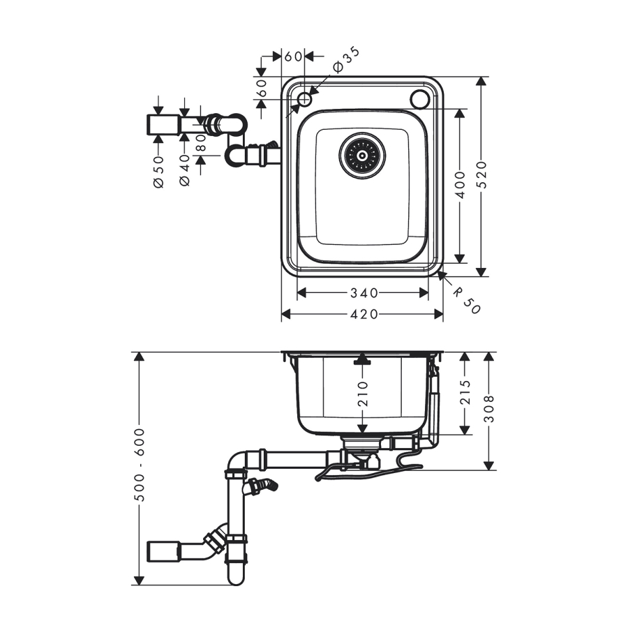 • şunları içerir:: tezgah üstü eviye, otomatik gider seti sifon ile genel ölçüler: 410 x 510 mm malzeme: paslanmaz çelik çanak sayısı: 1 ana hazne batarya deliği ve gider kontrol deliği hazırkabin ölçüsü: 45 cm montaj türü: tezgah üstü veya yüzeye sıfır montaj taşma pozisyonu: çanak lavabonun yan tarafında musluk deliği takviyesi, eviye bataryasının sıkı ve sağlam bir şekilde oturması içinköşe yarıçapı: 70 mm eviye derinliği: 210 mm