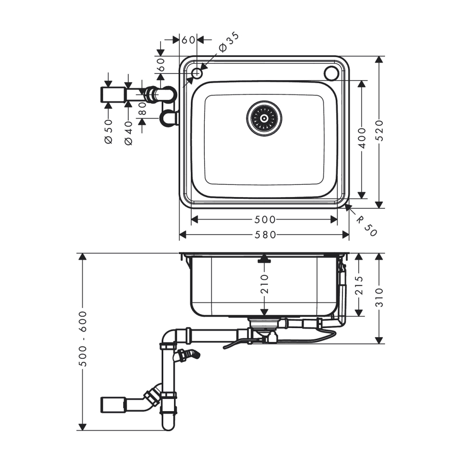 • şunları içerir:: tezgah üstü eviye, otomatik gider seti sifon ile genel ölçüler: 570 x 510 mm malzeme: paslanmaz çelik çanak sayısı: 1 ana hazne batarya deliği ve gider kontrol deliği hazırkabin ölçüsü: 60 cm montaj türü: tezgah üstü veya yüzeye sıfır montaj taşma pozisyonu: çanak lavabonun yan tarafında musluk deliği takviyesi, eviye bataryasının sıkı ve sağlam bir şekilde oturması içinköşe yarıçapı: 70 mm eviye derinliği: 210 mm