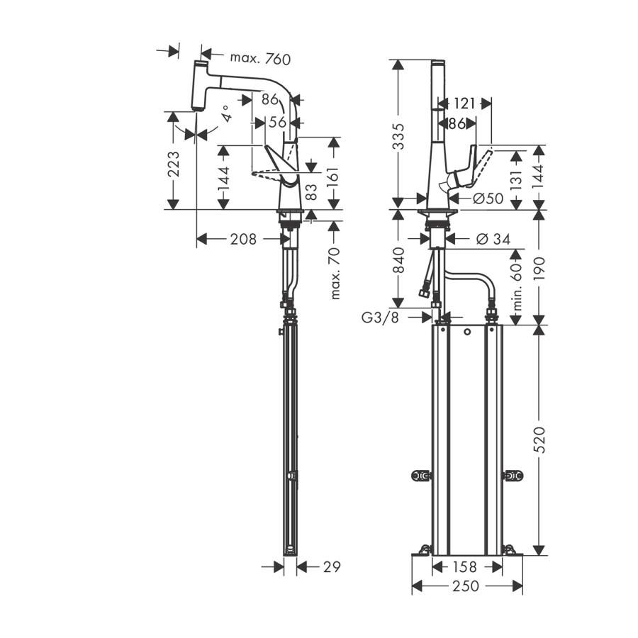 • bağlantı türü: G ⅜ bağlantı hortumları
