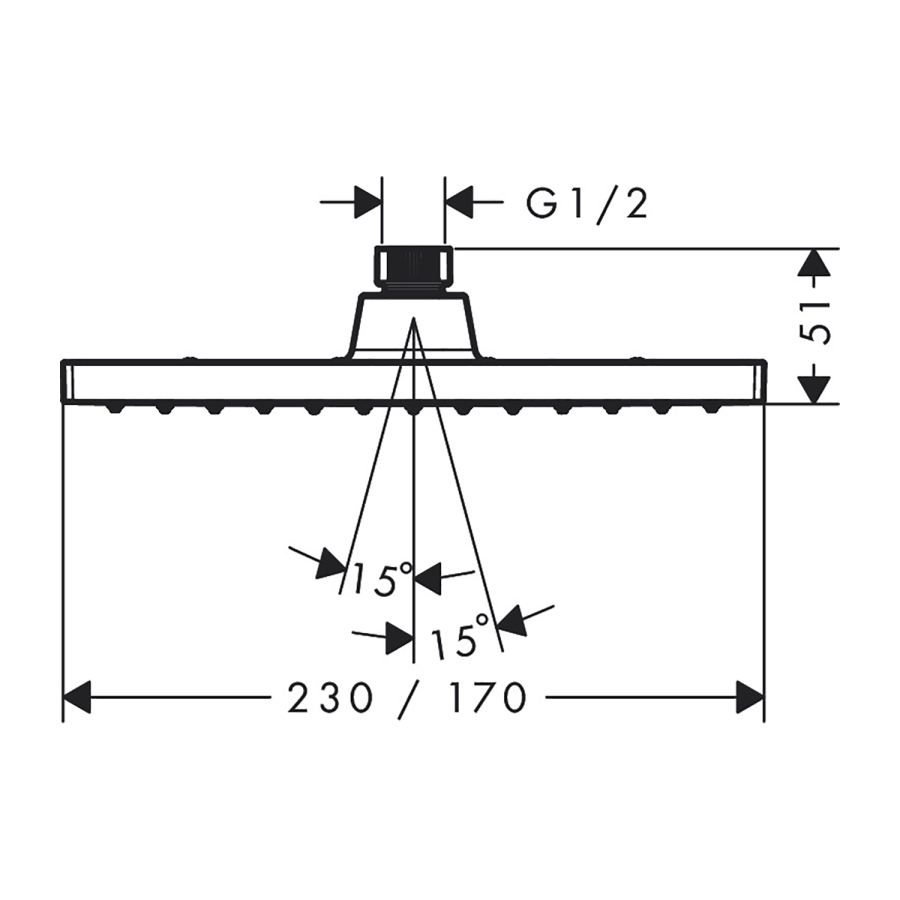 • duş başlığı ölçüsü: 230 x 170 mm