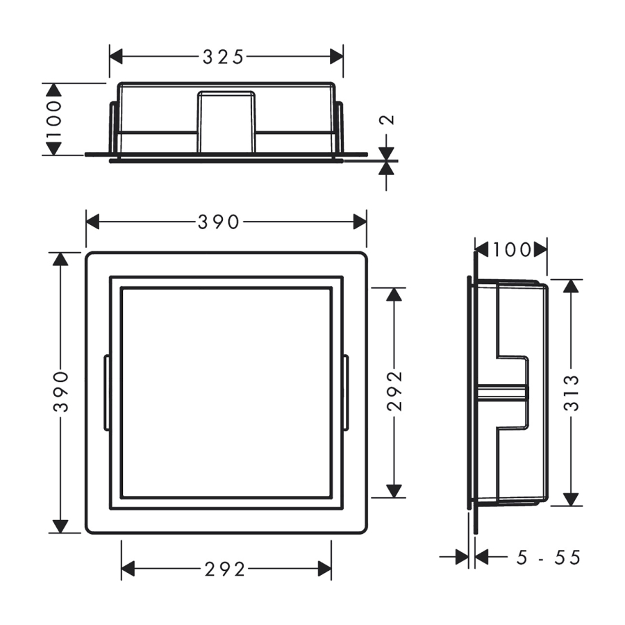 • boyutlar duvar niş: 300 x 300 x 100 mm (YxGxD)