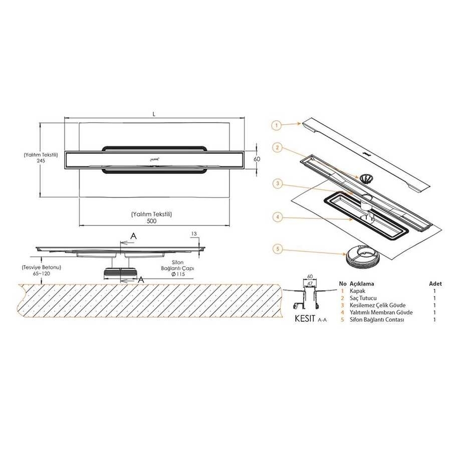 • Duş kanalı 60 cm'dir.