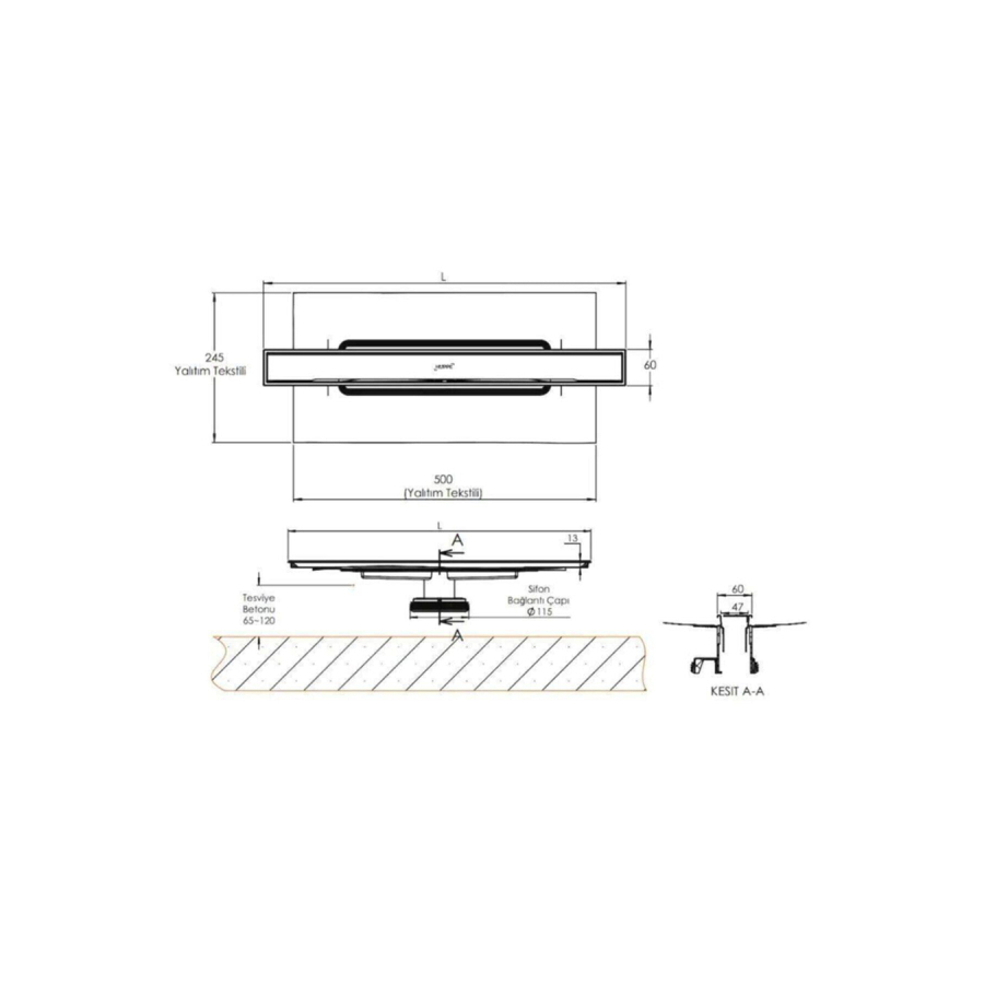 Hüppe Galata A Duş Kanalı Yandan Çıkışlı Mat Satine 60 cm