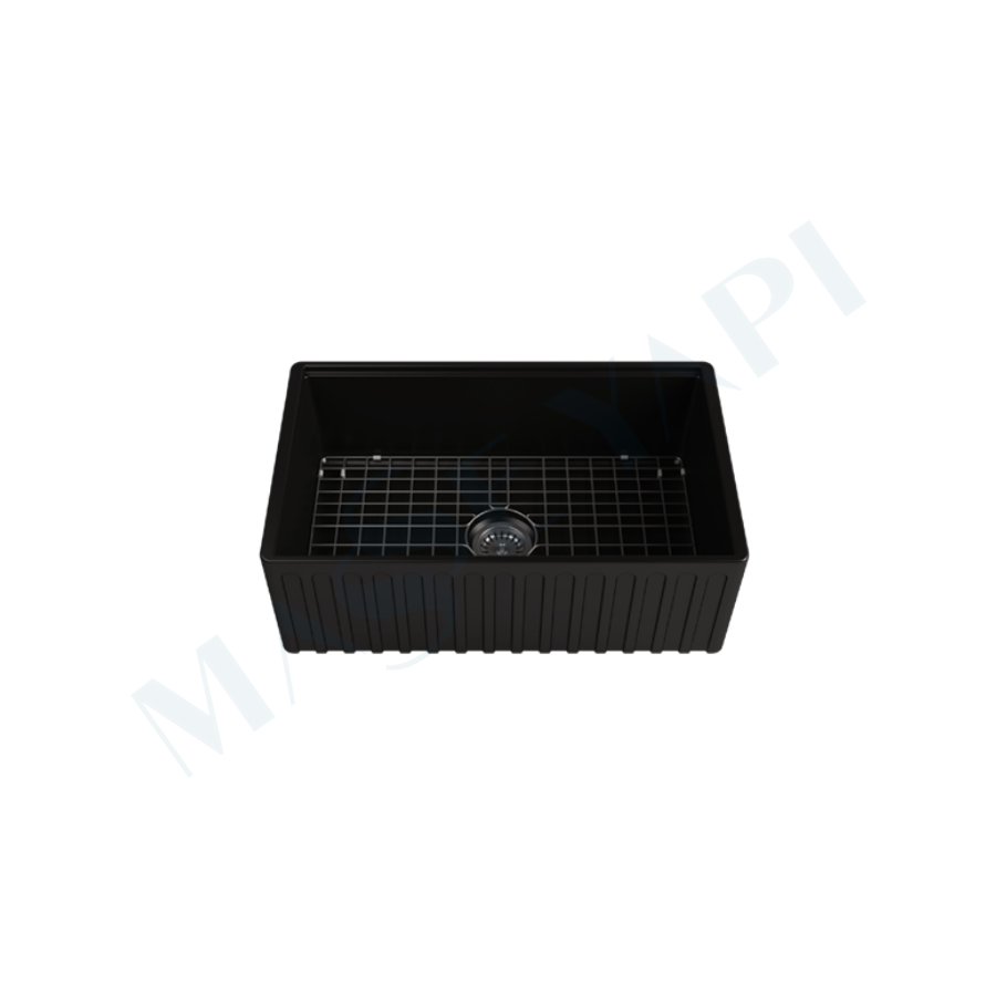 İSVEA Ravenna Tek Hazneli 76 cm, Siyah Eviye + Sifon + Izgara / SET