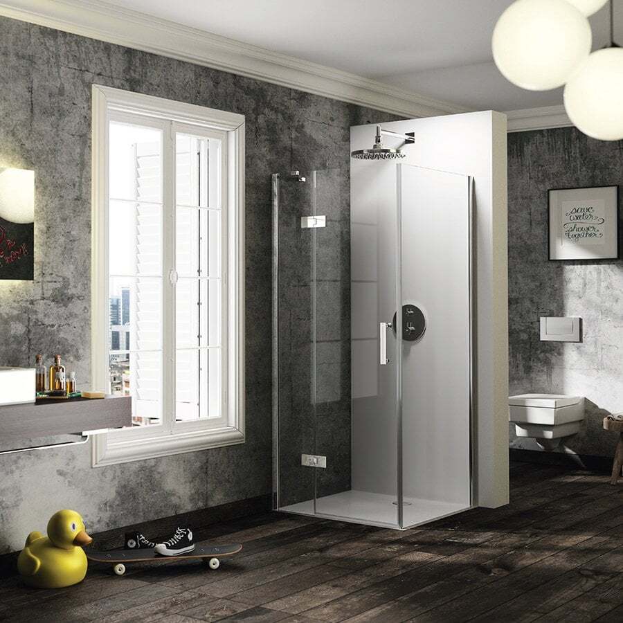Solva İki Sabit Cam İki Menteşeli Kapı Duş Teknesi Üstü Yan Panelli Duşakabin