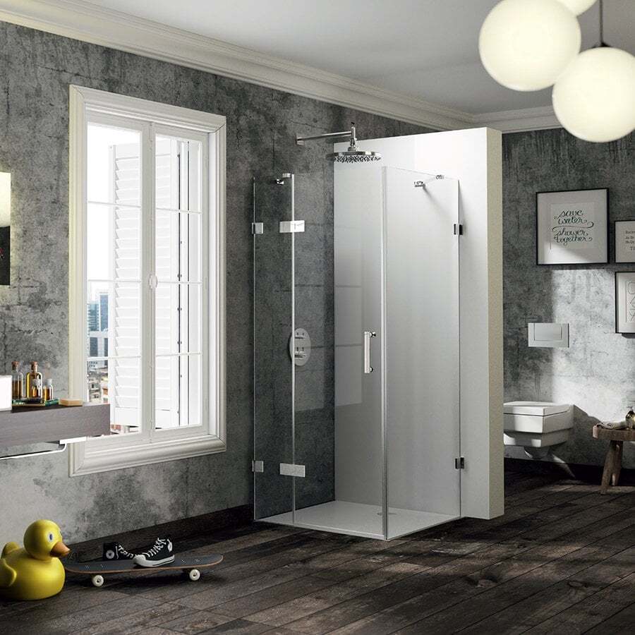 Solva Minimal İki Sabit Cam Bir Menteşeli Kapı Duş Teknesi Üstü Yan Panelli Duşakabin